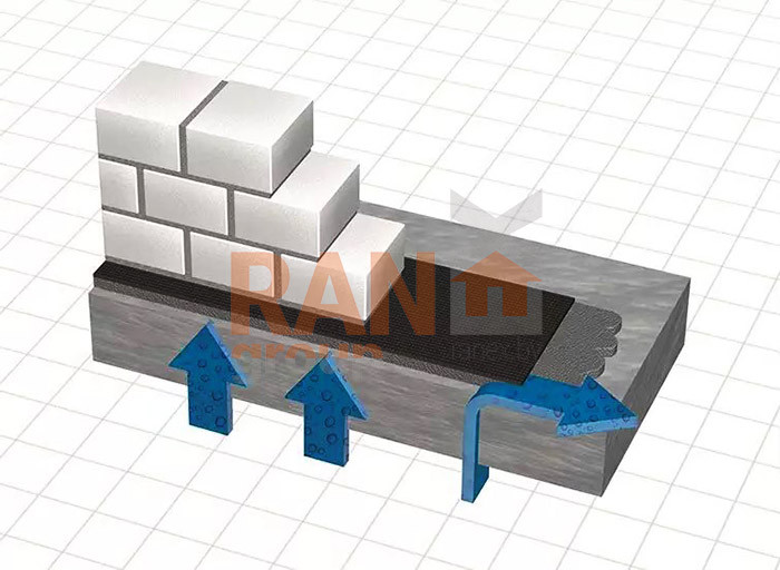2. СТЕНЫ. Горизонтальная отсечная гидроизоляция необходимо использовать непосредственно в стенах и под стенами против капялярно поднимающейся влаги (капиллярный подсос);