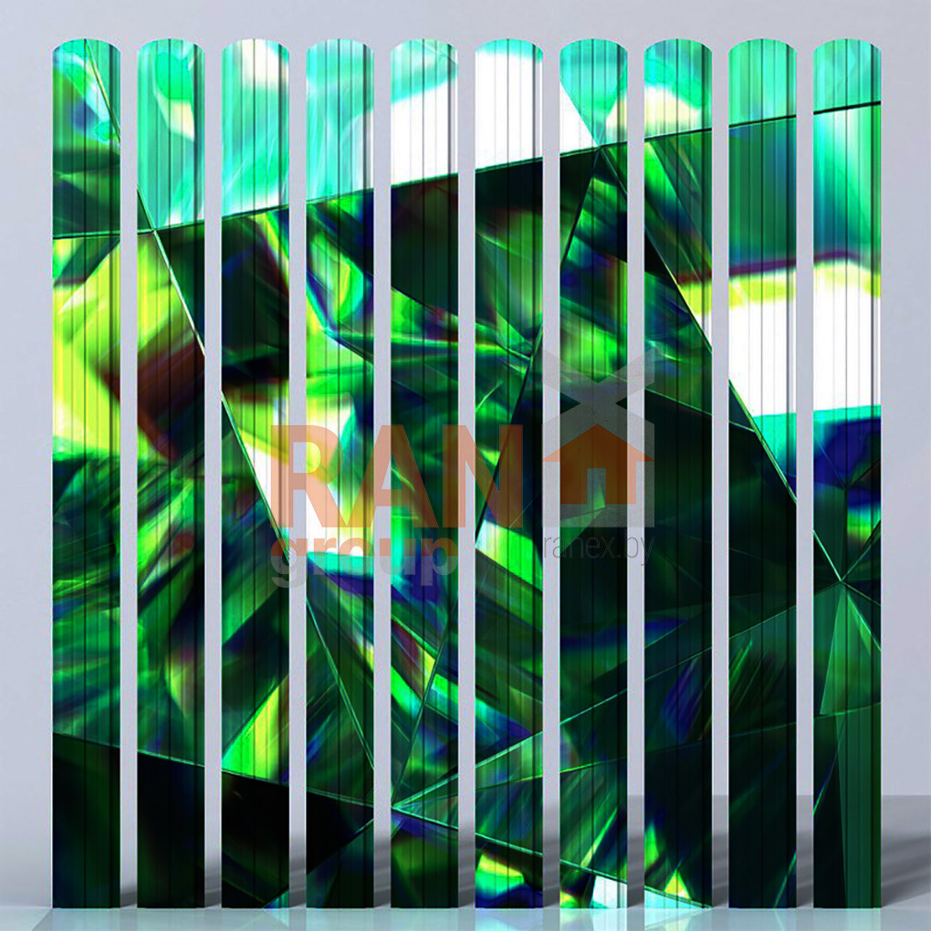 Штакетник коллекции PrintMittal - это тройная медиана со специальным дизайнерским покрытием с различными принтами, изображениями, рисунками, визуализациями. В одностороннем mono-покрытии и двустороннем duo-покрытии. К данному штакетнику любой коллекции есть родной профлист с аналогичным изображением.